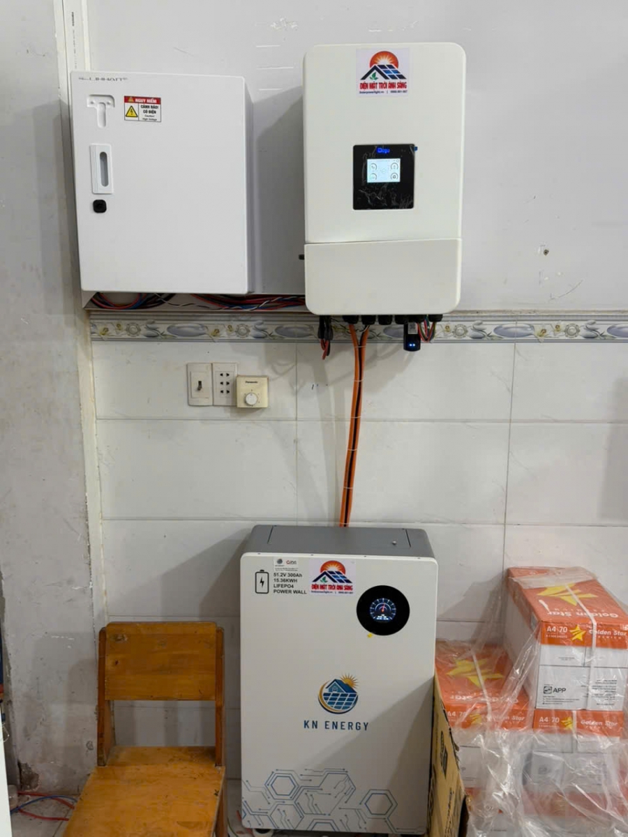– Khi nguồn điện mặt trời thiếu, hệ thống sẽ bổ sung nguồn điện lưới để cung cấp cho các thiết bị điện và sạc cho pin lưu trữ lithium.