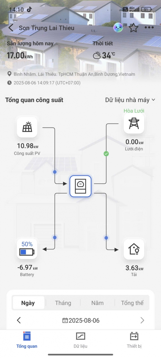 – Khi nguồn điện mặt trời thiếu, hệ thống sẽ bổ sung nguồn điện lưới để cung cấp cho các thiết bị điện và sạc cho pin lưu trữ lithium.