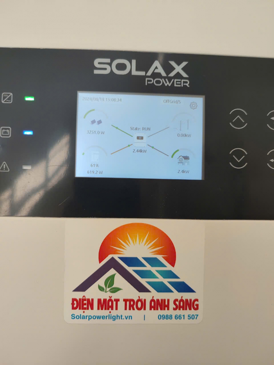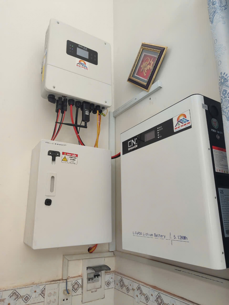 – Khi nguồn điện mặt trời thiếu, hệ thống sẽ bổ sung nguồn điện lưới để cung cấp cho các thiết bị điện và sạc cho pin lưu trữ lithium.